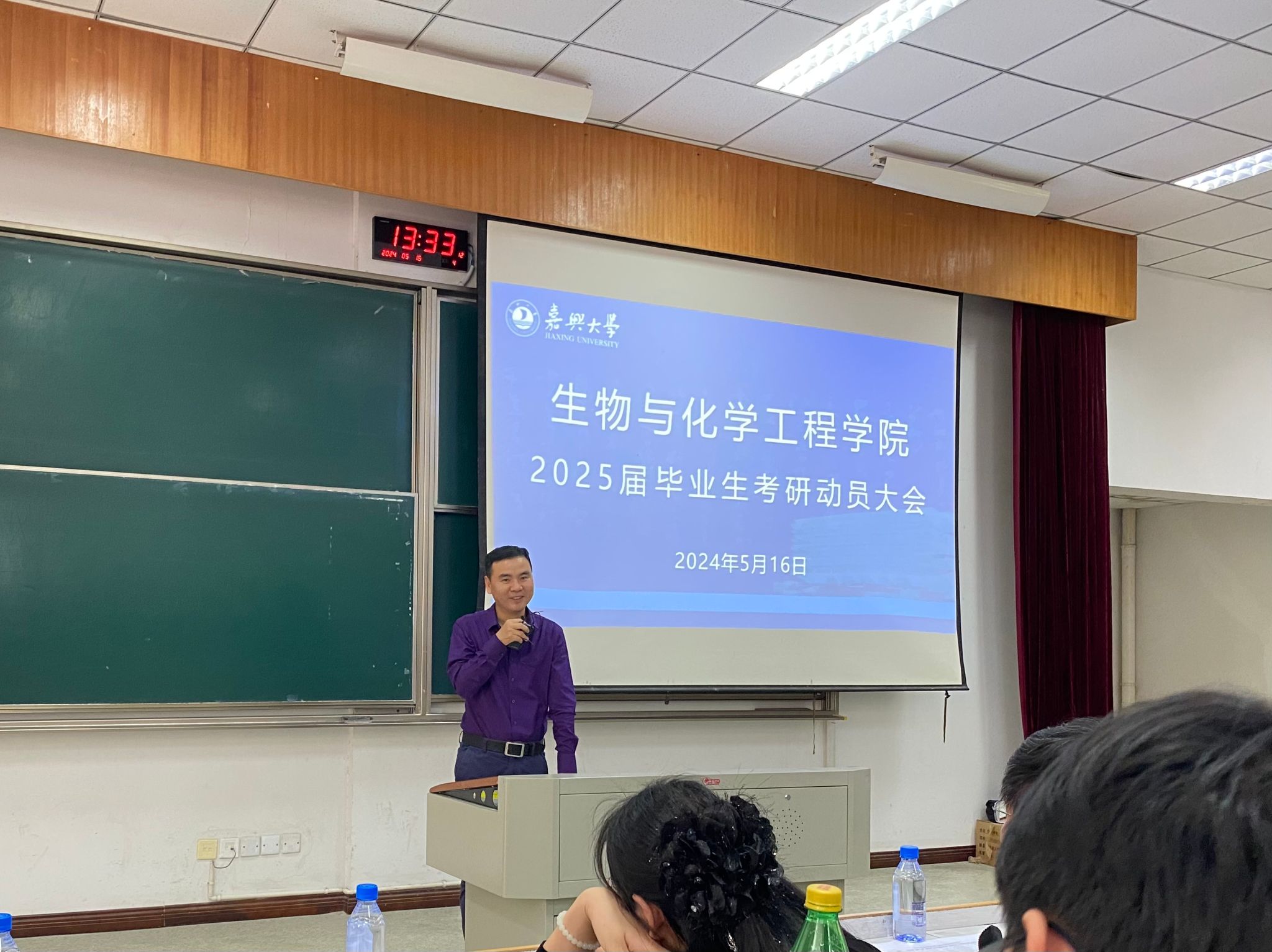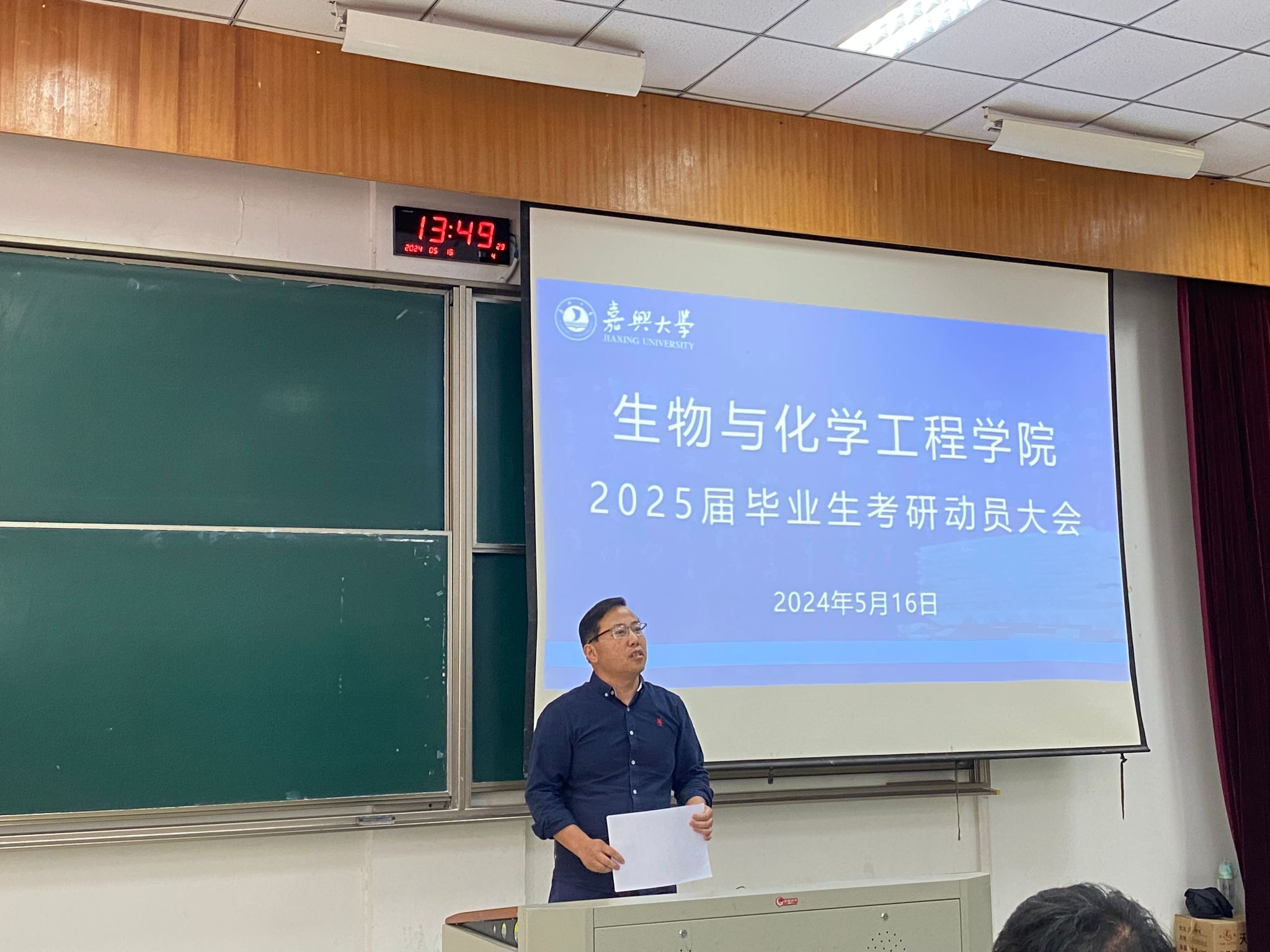 为进一步提高2025届学生的考研积极性,引导学生科学做好复习规划,力求在今年的研究生考试中实现新突破,5月16下午,生化学院在博闻楼报告厅召开了2025届毕业生考研动员大会,生化学院院长曹雪波教授出席并作动员讲话,党委副书记黄艺主持会议,考研班主任朱长俊、2025届全体班主任、思政辅导员2025全体考研学生参加。