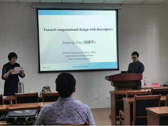 2019年10月22日下午,在梁林校区1号楼506学术报告厅,中国科学院大连化物所理论催化特区研究组组长肖建平研究员来我院作题为《基于理论描述符的固体催化剂设计》的学术报告