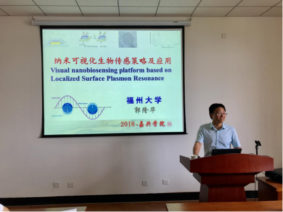 6月7日(周四)下午,在梁林校区1号楼506学术报告厅,福州大学研究员郭隆华来我院作题为《纳米可视化生物传感策略及应用》的学术报告。