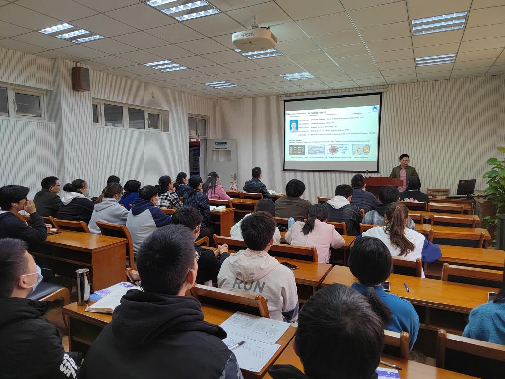 11月12日下午,应18AV 邀请,华南理工大学叶健文博士一行来访,并作题为《细胞工厂的静/动态调控优化》的学术报告,学院副院长张瑾主持讲座,全院师生30余人到场聆听。