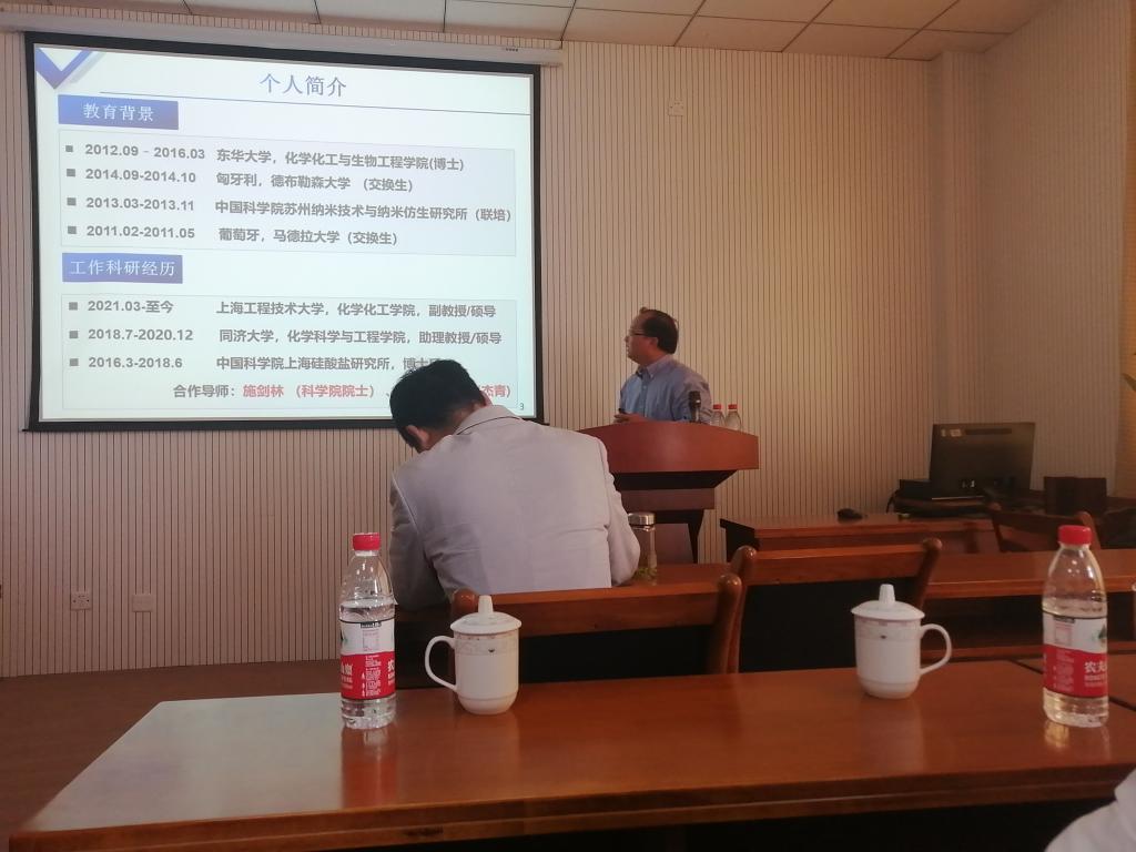 5月21日下午,在梁林校区1号楼506学术报告厅,上海工程技术大学罗宇博士来我院作题为《能量场响应智能生物医药材料》的学术报告。