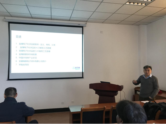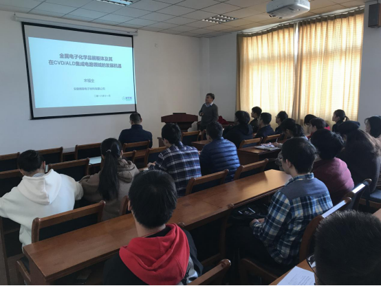 11月22日上午,安徽博泰电子材料有限公司总经理宋福全博士来我院作题为《金属电子化学品前驱体及其在CVD/ALD集成电路领域的发展机遇》的学术报告。