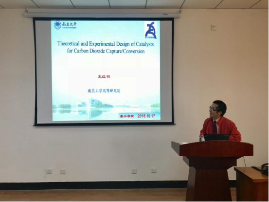 10月17日上午,在梁林校区1号楼506学术报告厅,南昌大学赣江特聘教授王红明博士来我院作题为《二氧化碳捕获和转化的实验与理论研究》。