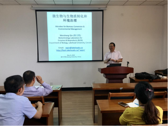 5月31日下午,在1号楼506学术报告厅。加拿大湖首大学秦文胜教授来我院作题为《微生物与生物质转化和环境治理》的学术报告。