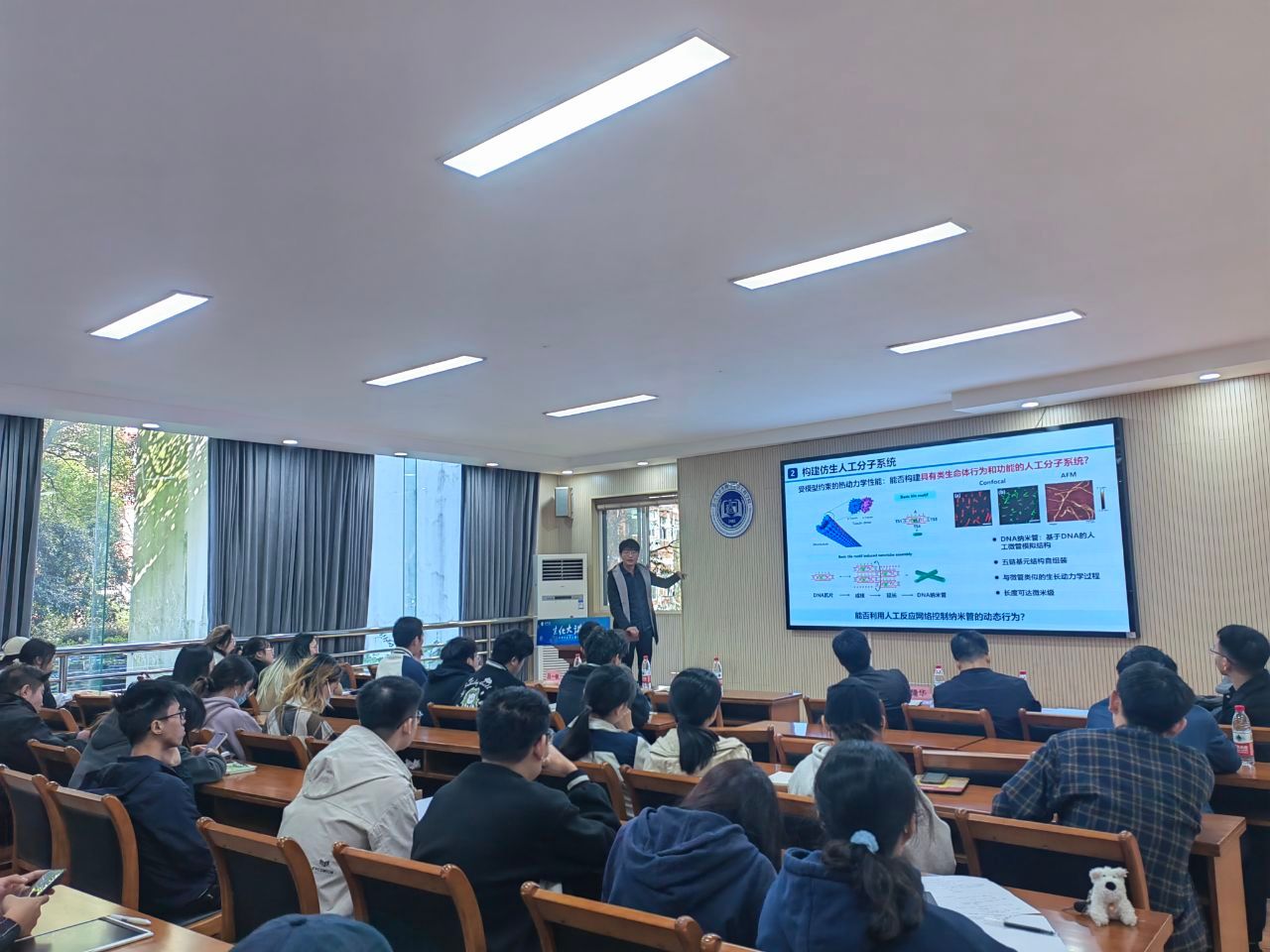 11月7日上午,湖南大学吕一帆副教授作客“生化大讲堂”并应邀为生化学院师生做题为“DNA分子系统的构建和模型解析”的学术报告。生化学院郭隆华教授主持会议,全院师生近50人到场聆听。