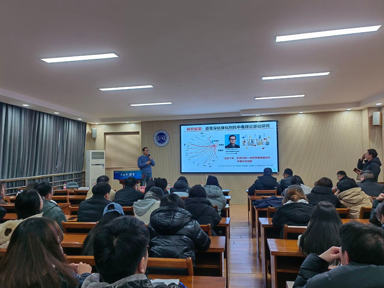 1月9日下午,浙江大学翁小乐教授作客“生化大讲堂”并应邀为生化学院师生做题为“复杂工况催化控制化学”的学术报告。生化学院王小强博士主持会议,全院师生近60人到场聆听。