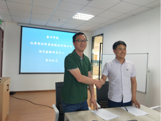 2019年5月29日,杭摩新材料集团股份有限公司与嘉兴学院生化学院李加友团队成立了“绿色酚醛研发中心”,并签订了“绿色酚醛树脂新材料系列产品的开发”的技术开发合同,合同金额100万元。