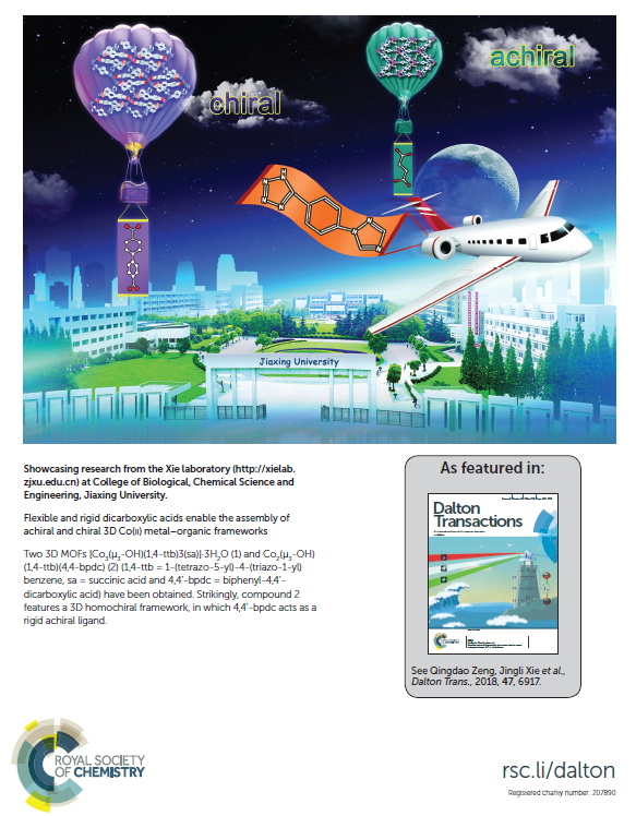 生化学院谢景力课题组在"Dalton Transactions"发表封底论文
