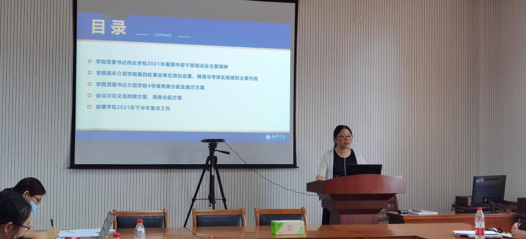 会议总结了2021年上半年学院的主要工作,对下半年重点工作进行部署安排。新学期学院将认真贯彻落实“七一”重要讲话精神,继续深入开展党史学习教育,全面配合做好省委巡视准备和整改工作,有序平稳完成4号楼办公用房设计、装修和搬迁工作,加强学院安全稳定等工作。