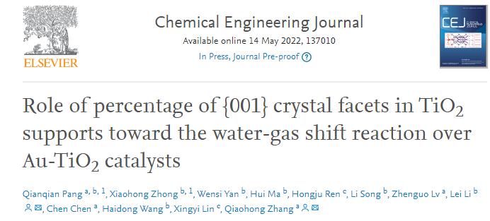 近日,18AV 18AV 李雷教授在TiO2晶面比例对水气变换催化性能影响的定量分析上取得重要进展,最新成果发表于化工领域顶刊Chemical Engineering JournalSCI一区,IF=13.273)。论文第一作者为18AV 与宁波大学联培研究生庞倩倩,李雷教授为第一通讯作者。