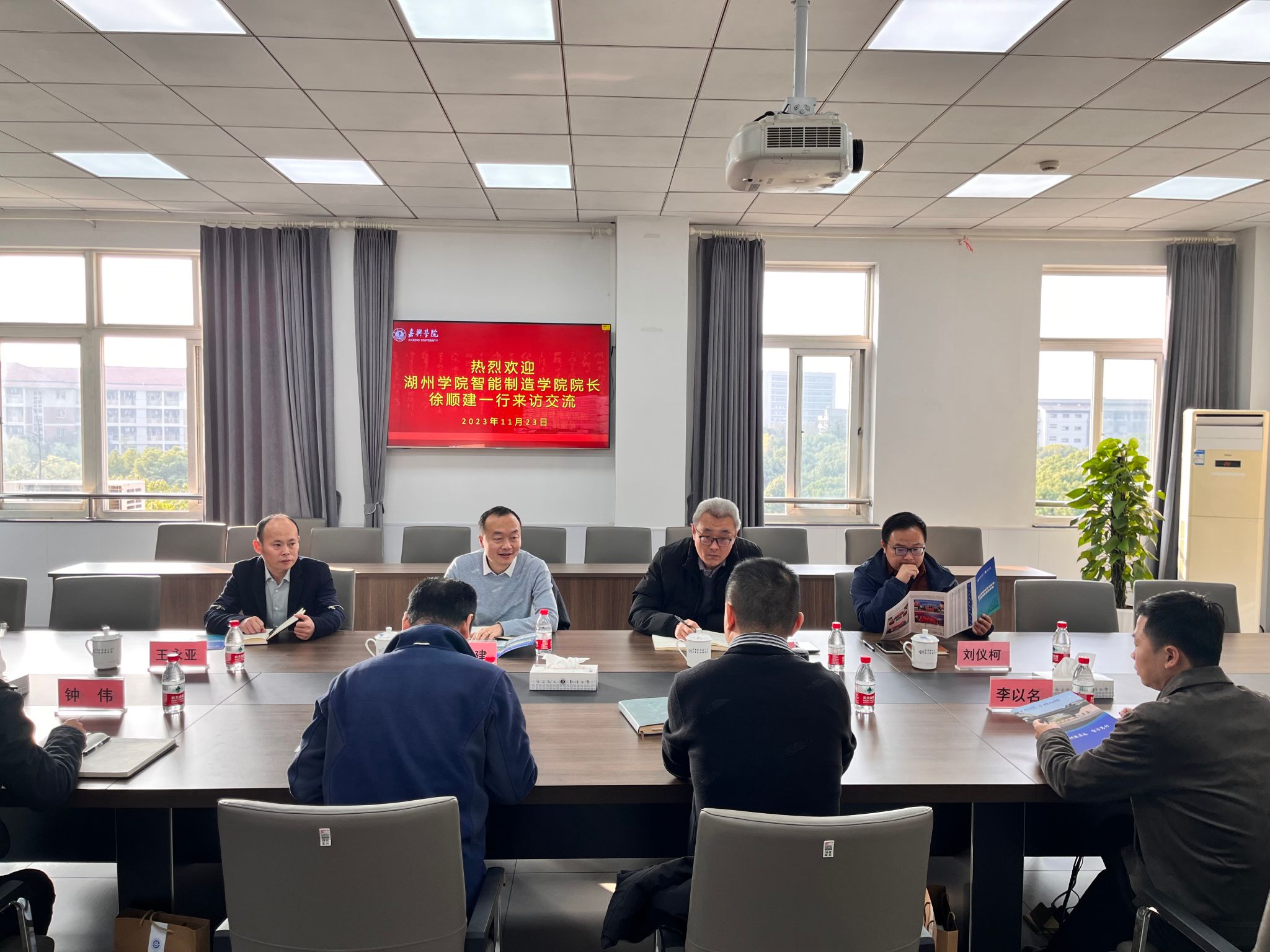 徐顺建介绍了湖州学院及智能制造学院基本概况,并表达了希望在产业学院建设思路、具体举措等方面加强沟通交流。随后双方围绕产业学院组织架构、运行机制、人才培养、成果转化、校(企)地合作、产教融合等方面开展深入交流,并就产业学院建设中遇到的区域政策、产业布局、人才引进等问题进行了交流探讨,希望双方相互借鉴,共同探索和完善产业学院建设思路和方案,协作推动产业学院高质量发展。
