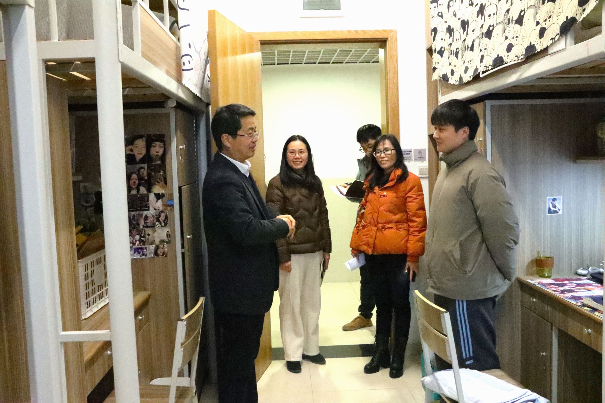 下午,於建明来到我院研究生和本科生寝室,与返校学生亲切交流,“寒假过得怎么样?”“新学期有什么规划?”“对学校和学院有什么意见建议?”......勉励广大同学在新学期静下心学习、沉下心思考、潜下心科研,在南湖畔的18AV 收获更多成长。
