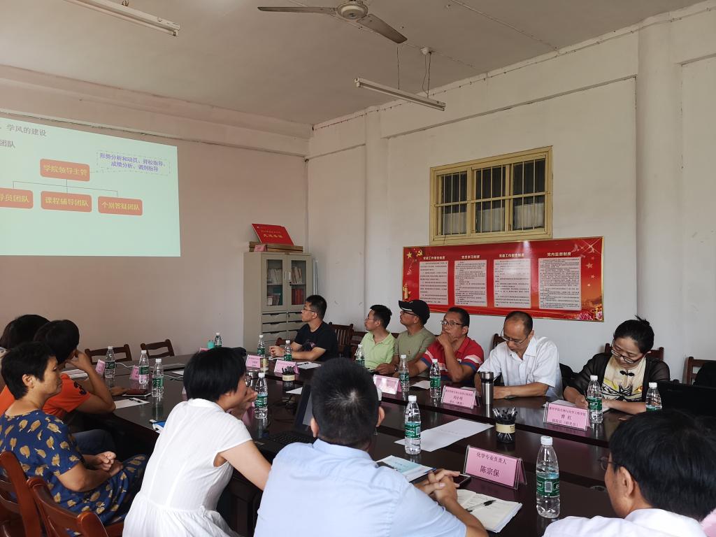 化学与环境科学学院院长叶青教授以及各教研室主任、专业负责人就学院的办学特色、学科竞赛、科研立项、学生考研等方面办学成就进行了介绍,随后双方就该院开展审核评估工作推进情况、评估的经验做法作了交流,重点对本科教学审核评估材料收集、整理及自评报告的撰写等方面进行了梳理,双方还就审核评估的重点内容,进行了深入交谈。座谈后,更加明确了我院各部门在评估过程中所需承担的职责。
